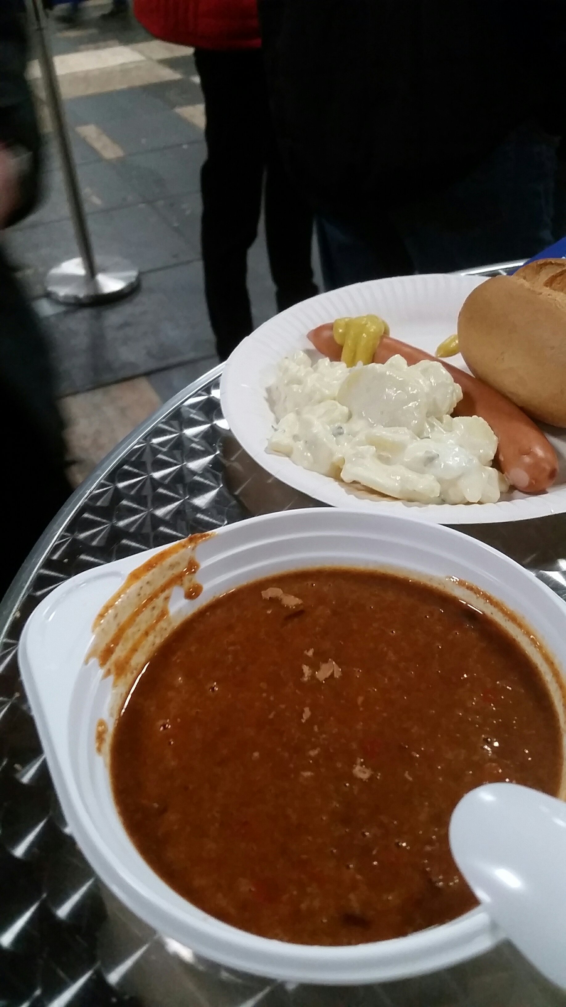 MM 18:21 – Es wird die bereits gewohnte Zitterpartie. Der rasende Reporter ist mit seinem Roller gerade erst am U-Bhf. Spittelmarkt eingefahren. Währenddessen genießen Ö und ich das kulinarische Angebot aus zweieinhalb Wochen gekochtes Chili con Carne und aufgeplatzter Wurst. Bisher also nichts neues.