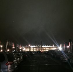 Genug der schlechten Reime, rein ins Stadion, bzw. erstmal rauf auf den Olympischen Platz. Ich werde nicht müde dieses rituelle Parkplatz-Trinken zu huldigen. Erst recht bei Temperaturen um den Gefrierpunkt und leichtem Sprühregen ein ganz besonderes olympisches Erlebnis. Heute in Gesellschaft der Herrschaften von ARRR-Berlin. Jüngst neulich habe ich mal wieder in deren Gästebuch geschaut. Die Zeit der Gästebücher scheint jedenfalls vorbei zu sein. Vermutlich erzählt sich ARRR-Berlin ihre Sauf-Eskapaden jetzt auf Snapchat oder Jodel.