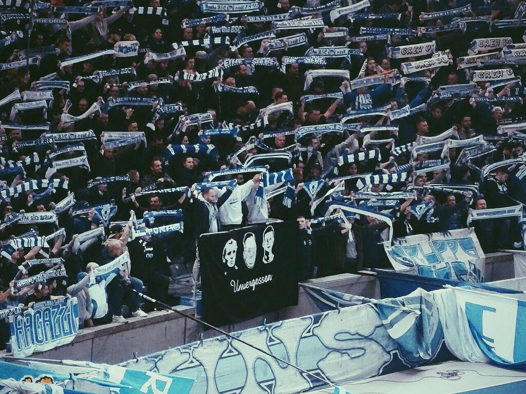 Das Land ist gespalten in Bayern-Fans und Anti-Bayern-Fans. In Erfolgsfans und ewige Neider. Oder? Seh ich anders. Ich mache bei dem allgemeinen Bayern-Bashing nicht mit. Nerviger als irgendwelche Dorfis im Bayerntrikots sind doch solche dilettantischen Fußballexperten, die sich nicht mal entscheiden können welches Team sie außer der Nationalelf supporten sollen. Dann doch lieber beweisen, dass man jahrzehntelang ernsthaft ohne Langeweile auf den Dauerbrenner steht. Und mir ist dreimal lieber, dass der FC Bayern die Meisterschaft oder den Pokal zum 100. Mal holt, als dass diese ganzen nervtötenden Clubs, die wir heute in der 1. Liga ertragen müssen, einmal da oben stehen. Abgesehen davon, dass es früher eine Freundschaft zwischen Bayern und Hertha gab, die die jüngeren Generationen beider Seiten respektvoll auf dem Schirm haben, halte ich die Fan- und Ultraszene vom FC Bayern für eine der Besten in Deutschland. Jahrelang sehr fanpolitisch aktiv, konsequent antirassistisch, beeindruckend in der eigenen Vereins- und Geschichtsarbeit, prägend im Stil. Die Gründung der Kurt Landauer Stiftung war in der jüngeren Vergangenheit für mich echt die Krone. Da können wir nur unsere Flexfit Caps ziehen. Und – das habe ich zwar schon mal irgendwo gesagt, aber egal – wer es in diesem Kommerztempel, bei diesem Publikum so lange aushält authentisch das ultrá Ding durchzuziehen, der kriegt von mir großen Respekt. In diesem Sinne, beste Grüße nach München. Heute fokussierte sich ihr Protest auf die Bewahrung der Vereinsfarben in Rot-Weiß. Ein Thema das wir ja auch zur Genüge kennen. Das Mintgrün (?) der Bayertrikots war jedenfalls ne harte Nummer heute. Manch einen Spieler hielt ich für eine Unschärfe in meinem Sehvermögen. Stimmungstechnisch kam ansonsten leider wenig in der Ostkurve an. Das hängt dann vielleicht doch wieder an den vielen FCB Umlandfans. Traurig war noch das Banner für das SM-Mitglied „Krölli“, der leider schwer erkrankt ist. Wir wünschen natürlich gute Besserung! Die ist wichtiger als alles andere.
