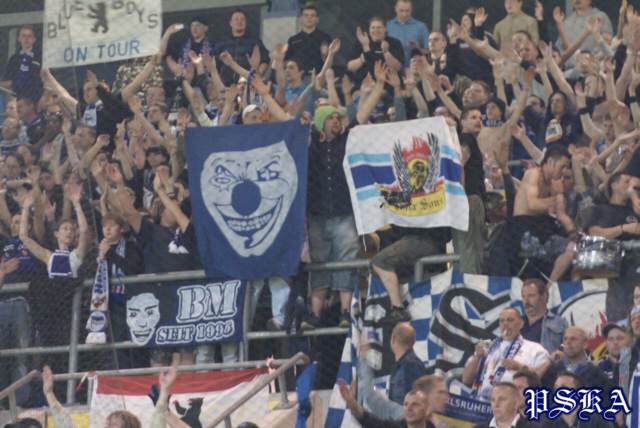Den Führungstreffer der Karlsruher hatten wir natürlich verpasst. Wir mir berichtet wurde hatte Kapllani wieder einmal den Ball in die Maschen gehauen. Der KSC musste die erste Halbzeit sehr souverän gespielt haben. Im zweiten Durchgang wurden die Rostocker stärker und konnten nach einer Viertelstunde den Ausgleich erzielen. Doch der Glücksmoment für die Fischköppe war nur ein kurzer, denn Mario Eggimann köpfte nach einem Freistoß von Porcello das Leder ins Eck. Das Spiel war in der Schlussphase noch einmal spannend, doch die Karlsruher konnten den Sieg behaupten. Damit war der Aufstieg nun eigentlich nicht mehr – das mit dieser Torverhältnisrechung werde ich nie verstehen – zu nehmen.